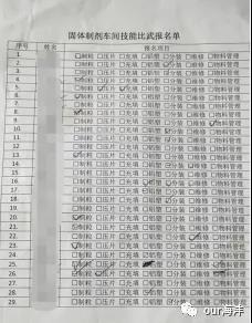 为了提高车间操作人员的学习积极性,提升各岗位人员的操作技能,云南海沣药业有限公司决定在2021年09月开展车间技能比武大赛。于是在一个风和日丽的早上,由固体制剂车间组织,质量管理部、人事部等多个部门的协同下,固体制剂车间率先开始了今年的技能比武大赛,大家的积极性都很高,报名表才出,大家就迫不及待的报上了自己擅长的岗位。