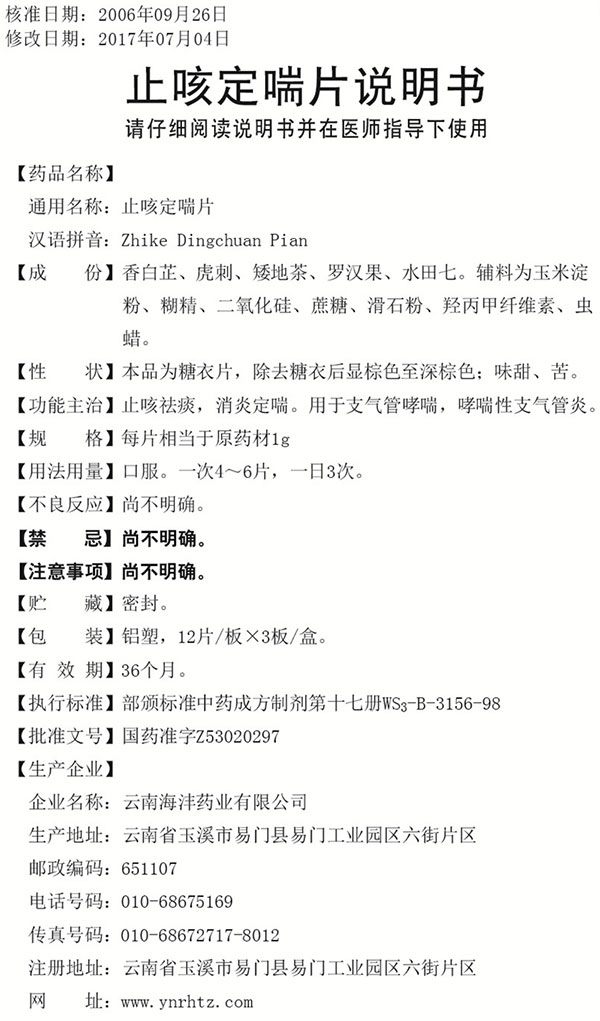 【通用名】止咳定喘片