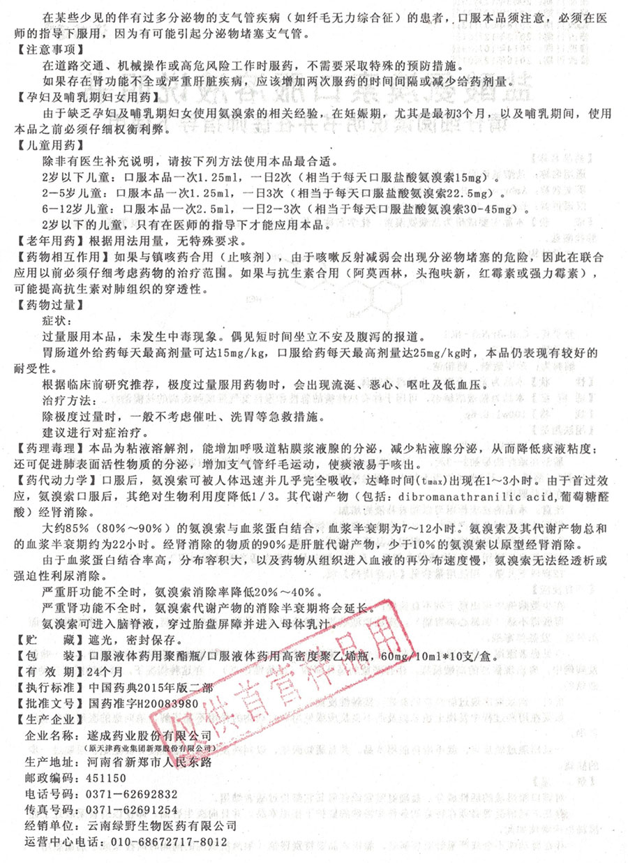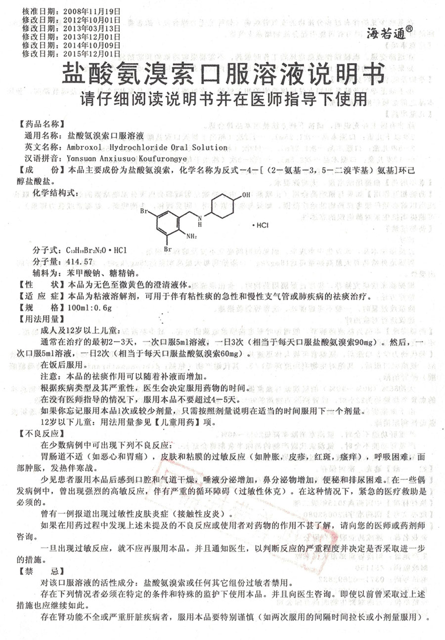 【通用名】盐酸氨溴索口服溶液