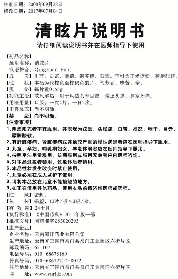 【通用名】清眩片